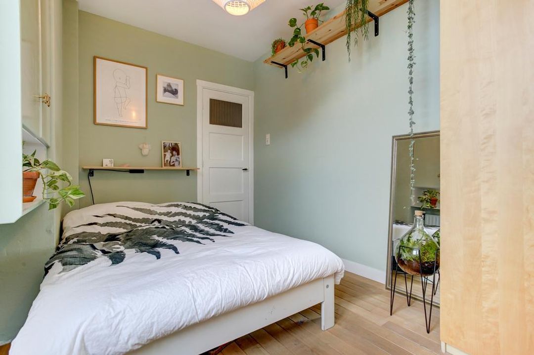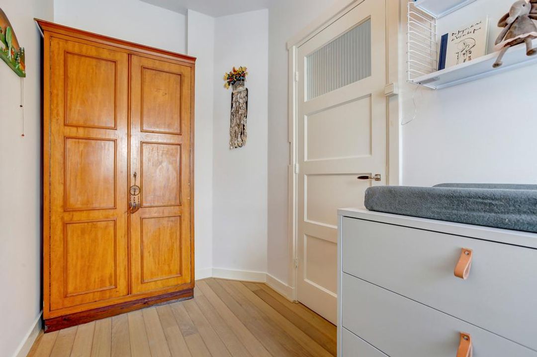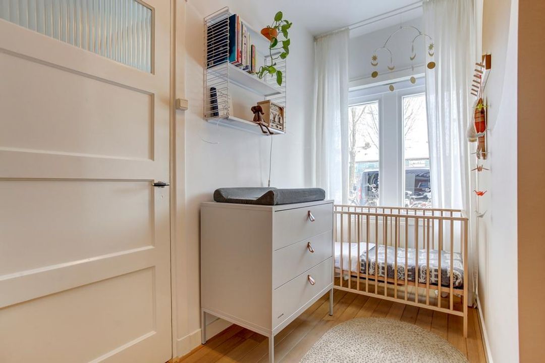 De woonkamer is aan de voorzijde van de woning gesitueerd en beschikt over een fraaie erker met uitzicht op de brede groenstrook en prachtige bomen van de Burgemeester van Tuyllkade. Aan de voorzijde van de woning tref je verder nog een kamer aan die thans in gebruik is als kinderkamer maar ook prima geschikt zou zijn als werkkamer. Ook deze kamer biedt een mooi uitzicht over het groen.